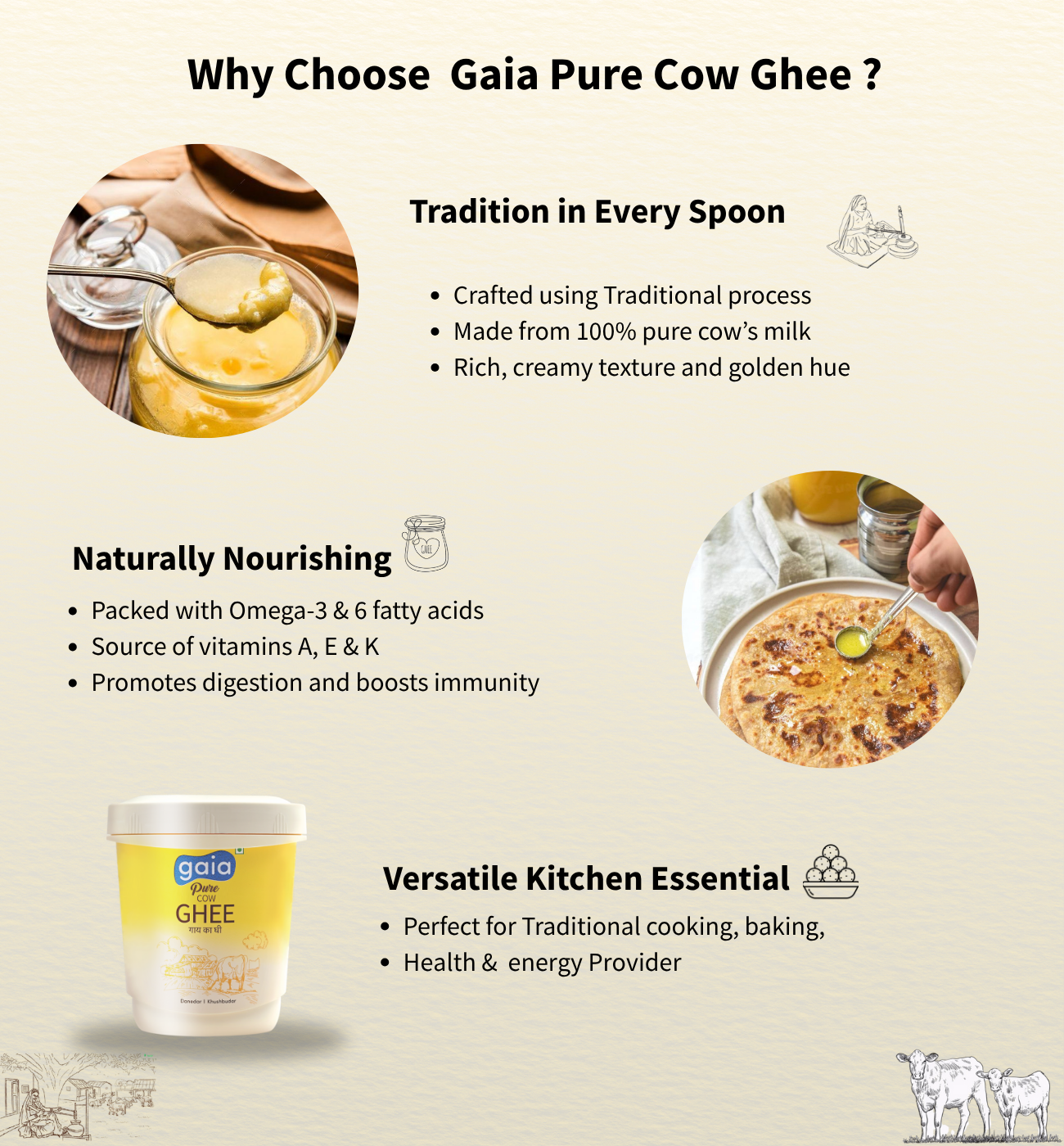 Cow ghee is a pure and aromatic clarified butter made from high-quality cow’s milk using advanced processing techniques. The traditional yet modern production process carefully removes water and milk solids, leaving behind pure golden butterfat with a rich, creamy texture and an irresistible taste. Naturally packed with Omega-3 and Omega-6 fatty acids, as well as essential vitamins A, E, and K, it is known to support immunity, aid digestion, and promote overall well-being. Ideal for cooking, drizzling over meals, or incorporating into a balanced diet for both taste and health benefits.