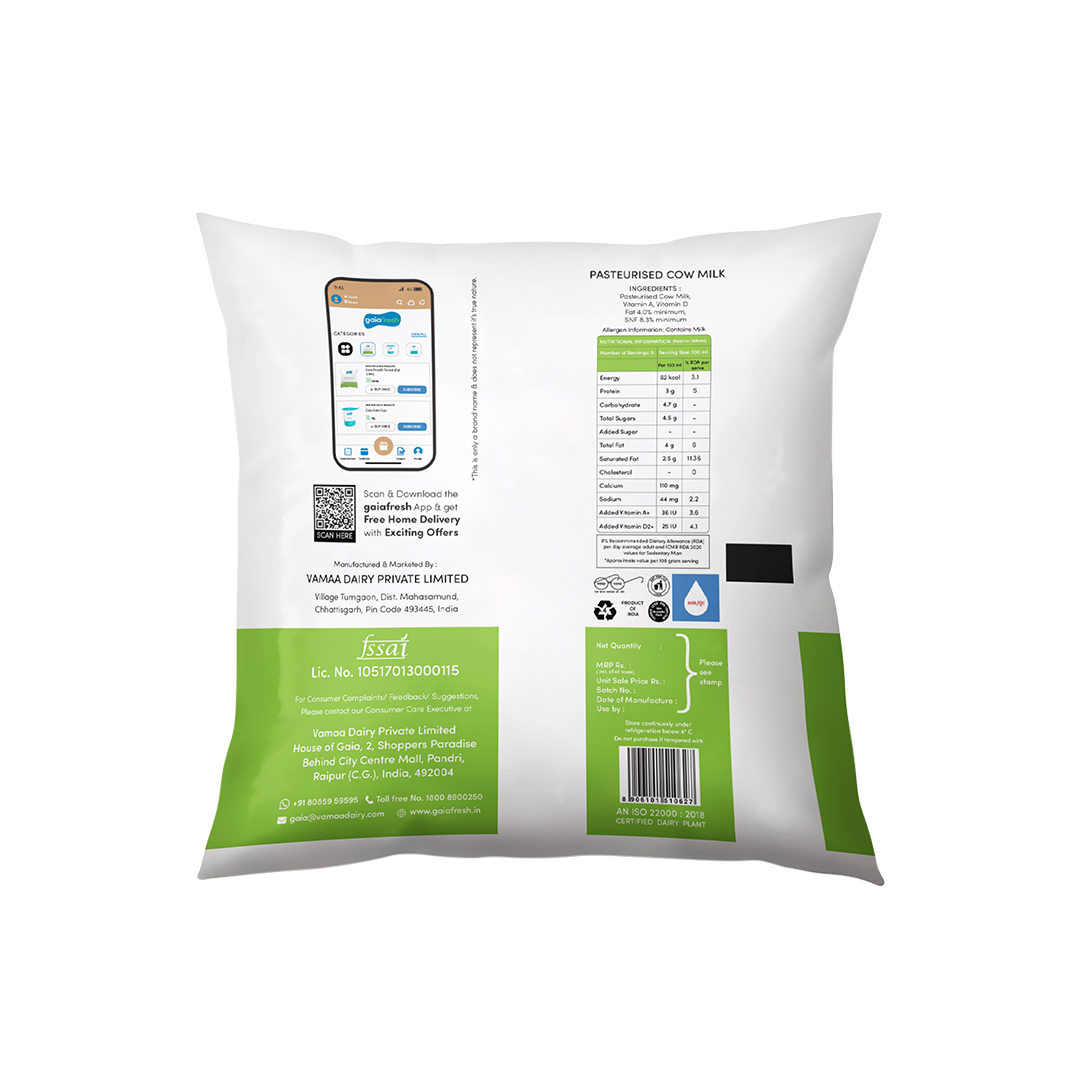 Milk offers the natural goodness of fresh cow’s milk in a convenient, easy-to-use packaging. It is carefully processed to retain essential nutrients while ensuring freshness. The poly pack is lightweight, flexible, and offers a cost-effective solution for daily milk consumption. Free from added preservatives, chemicals, or powders, it delivers pure milk with no artificial additives. The packaging is designed for easy pouring and storage, making it ideal for everyday use. For added convenience, it is easy to store and carry, ensuring you have fresh milk wherever you go.