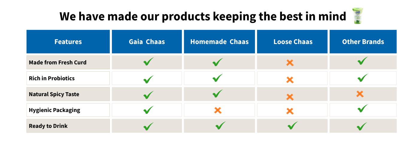 Chaas is a refreshing, traditional Indian buttermilk made from pure, high-quality cow’s milk. It is naturally low in fat and rich in probiotics, which support healthy digestion and boost immunity. The light, tangy flavour is complemented by a blend of spices like cumin, making it a perfect drink to cool off and hydrate, especially in hot weather. Packed with essential nutrients, GAIA Chaas aids in detoxification, improves gut health, and provides a natural energy boost. It’s an ideal drink to enjoy after meals or anytime for a nutritious and refreshing experience.